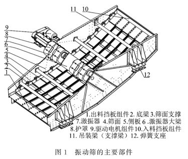 在實際生產(chǎn)中,振動篩開裂點一般有以下幾個部位:側(cè)板、底梁、激振器大梁、入料擋板組件、出料擋板組件。雖部件不同,但其處理原則相同,即對其進行加固處理以防止開裂位置延長。