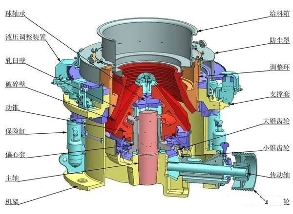圓錐破碎機(jī)首要采用稀油循環(huán)的光滑方法,其光滑的部位首要是球面軸承、主軸軸承、偏疼套軸承、圓錐齒輪和傳動軸等處。圓錐破碎機(jī)產(chǎn)生的光滑不良現(xiàn)象,大多集中在首要受力部位上如主軸軸承、偏疼套軸承及球面軸承等。